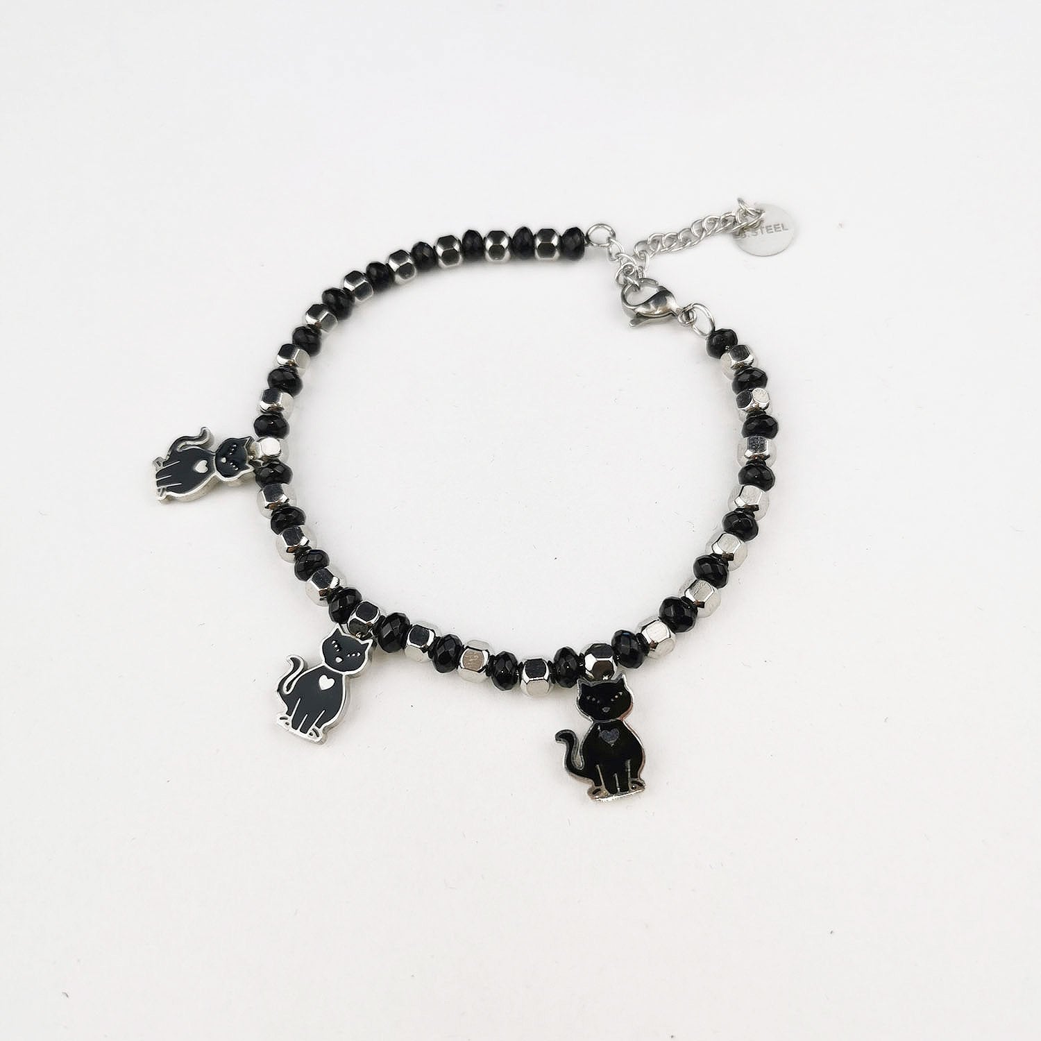 Braccialetto in Vetro con Pendoli a Forma di Gatto