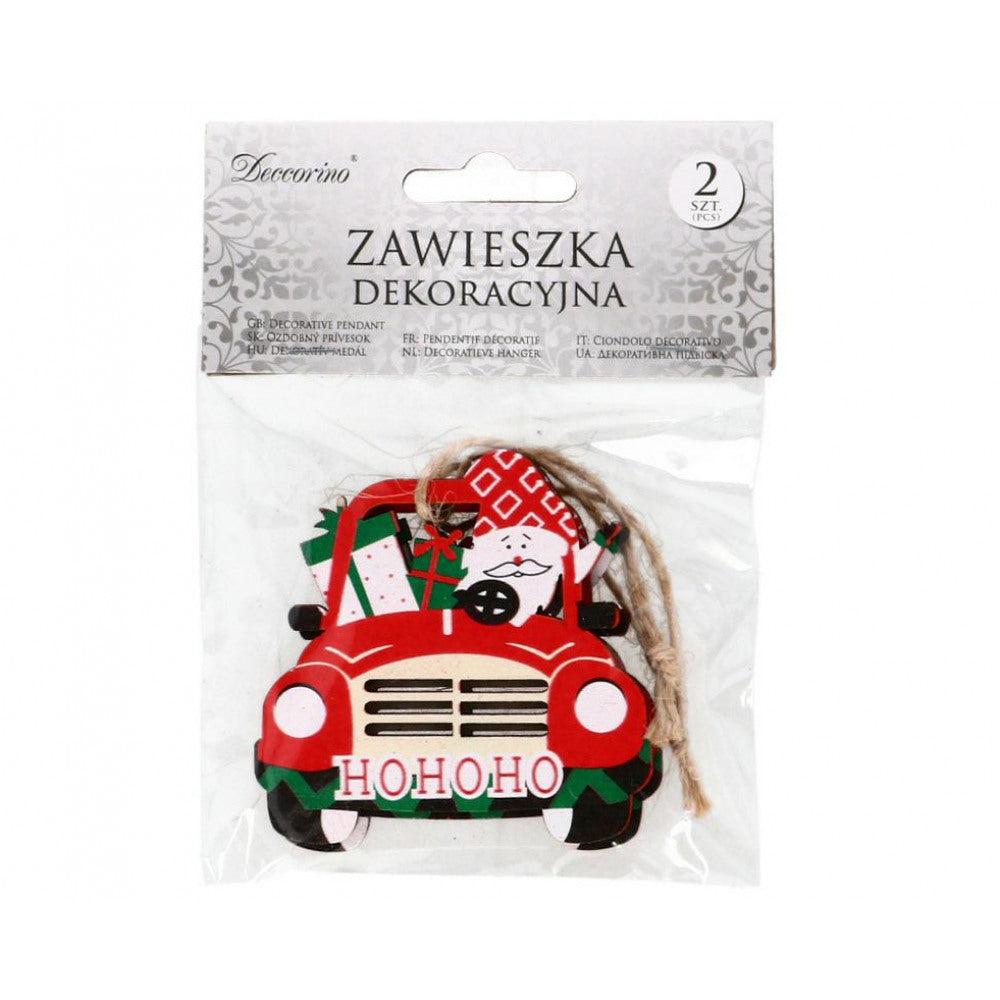 Auto pendente natalizia in legno con Babbo Natale 7x7 cm - set da 2