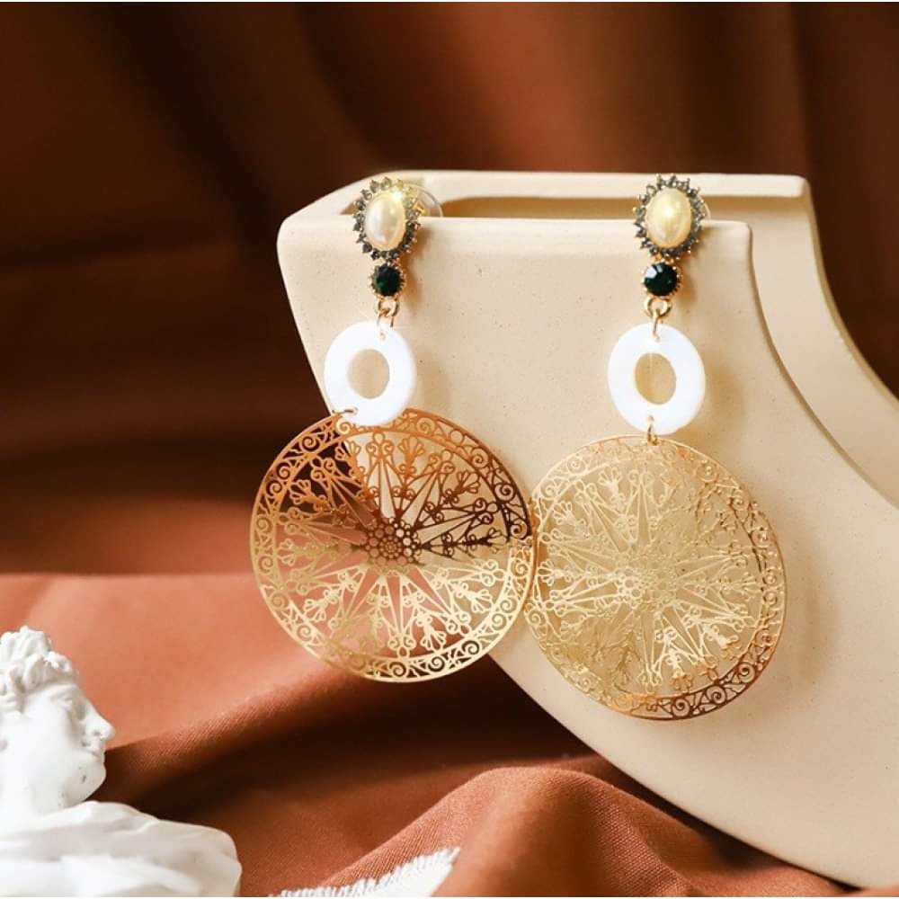 Orecchini in acciaio chirurgico e oro 14 carati con componenti in resina