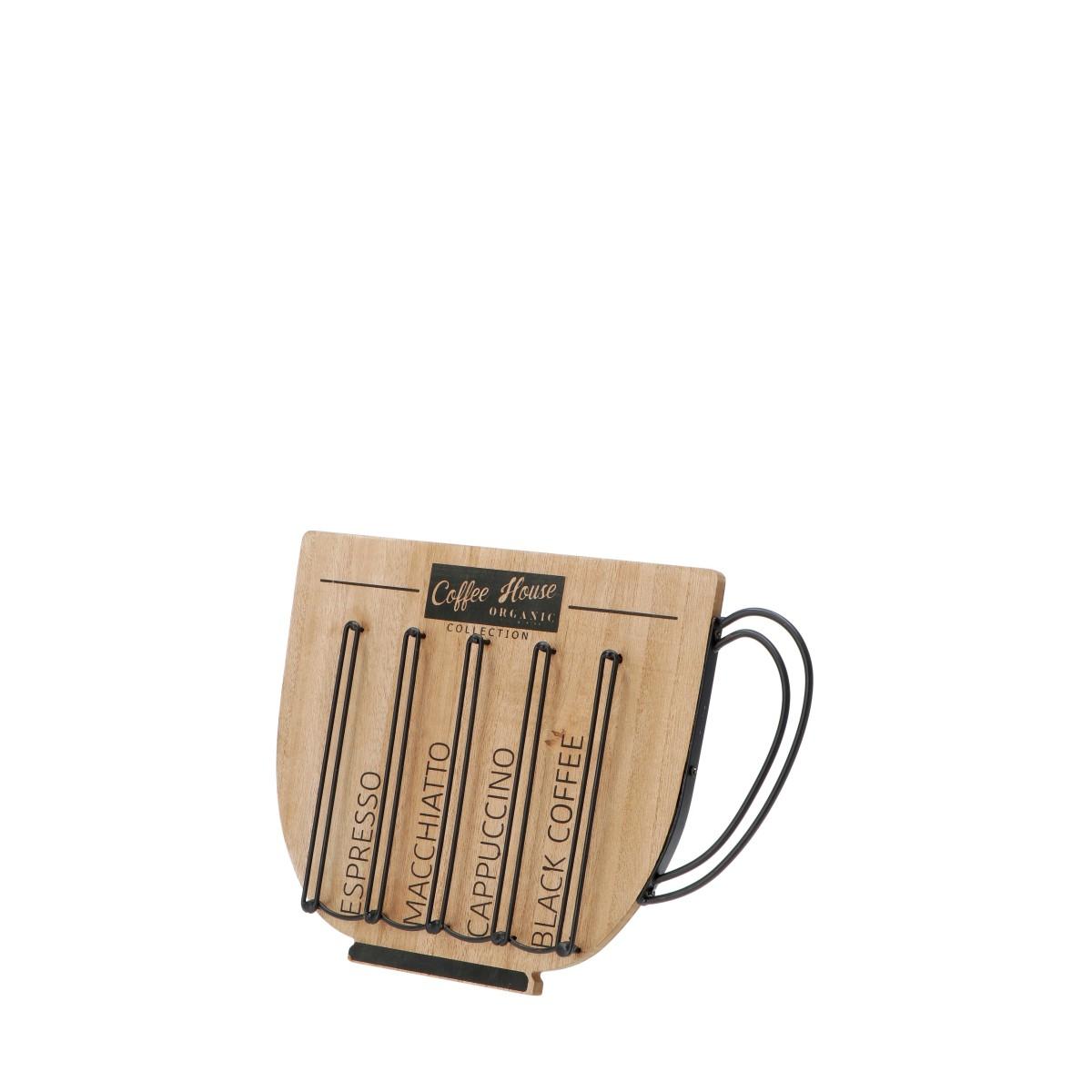 Portacapsule in metallo e legno a forma di tazza con piedistallo ( tipo cornice foto )