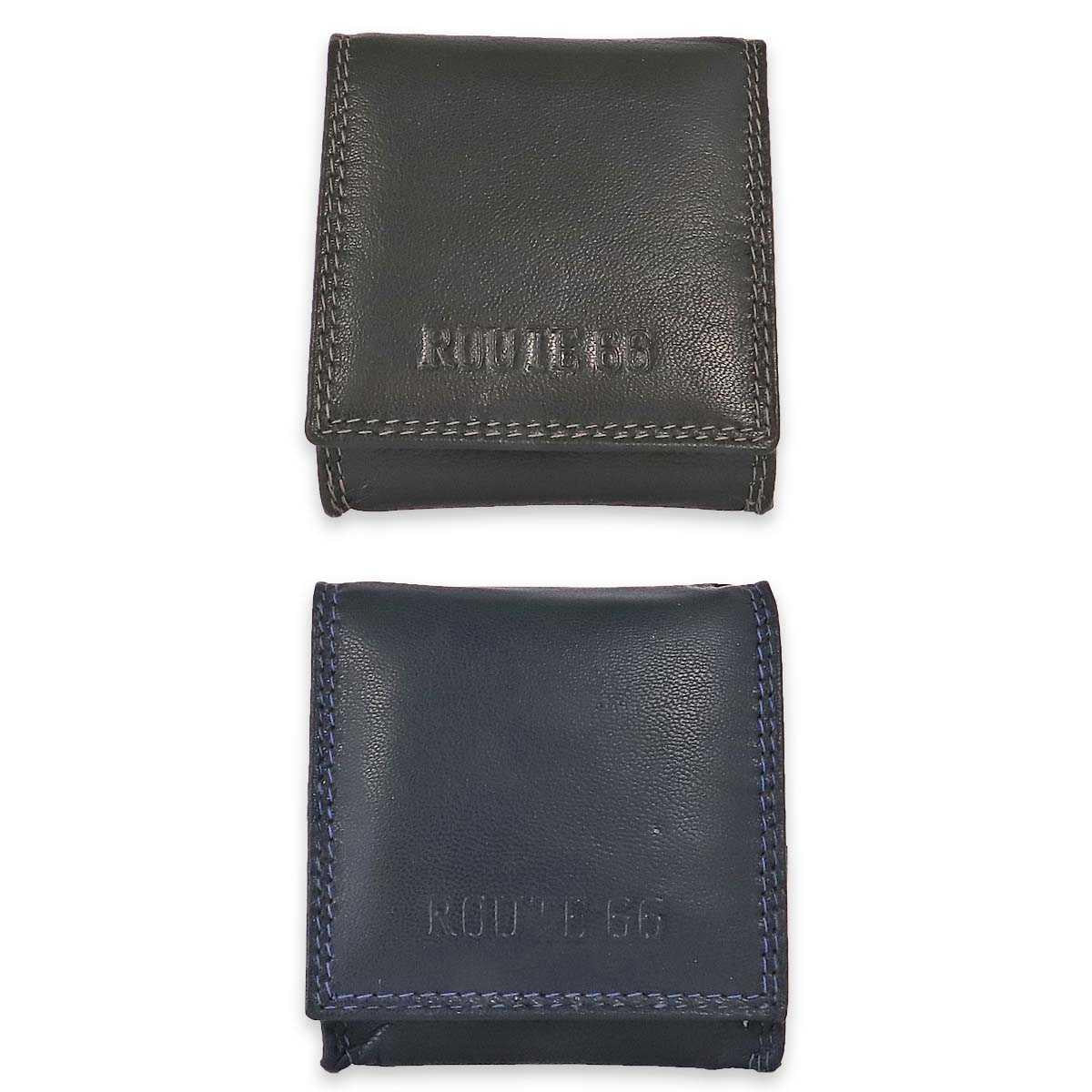 il Portamonete firmato route 66 da uomo è in ecopelle e misura chiuso cm 8x8